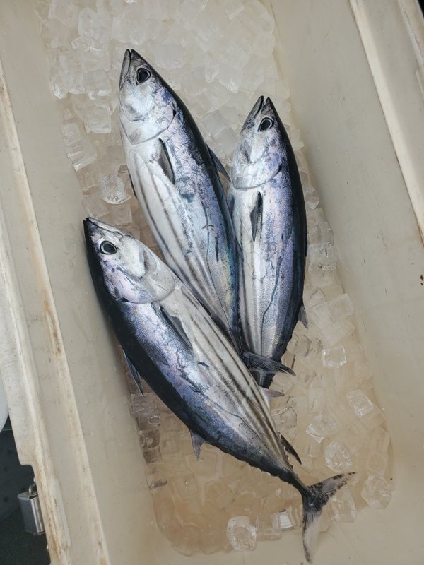 ティップラン当たらず、2人初キャスティングで1人はゲット。海上宅配便でカツオもゲット