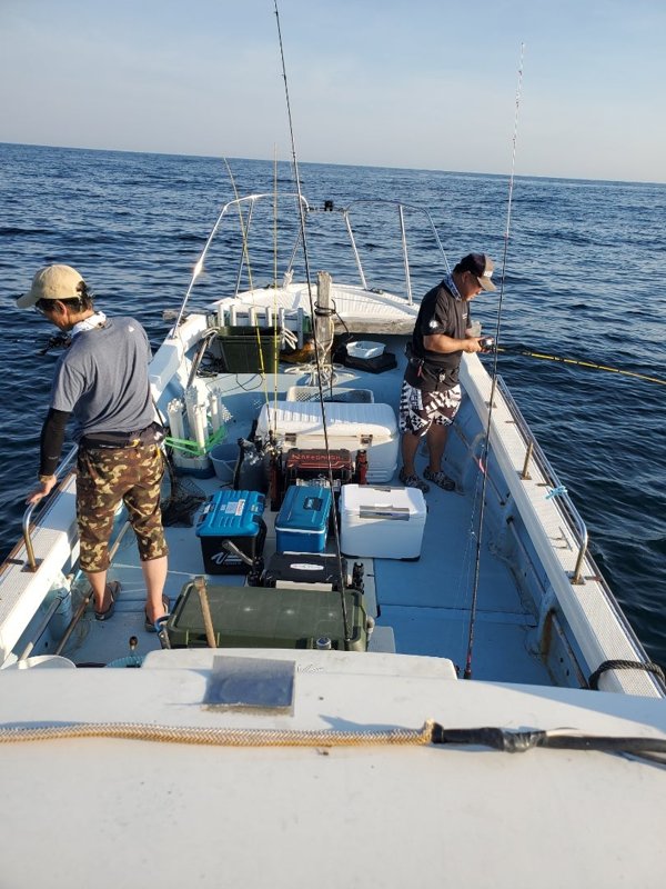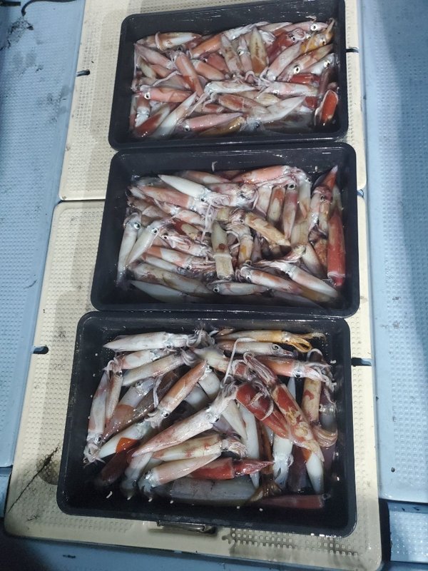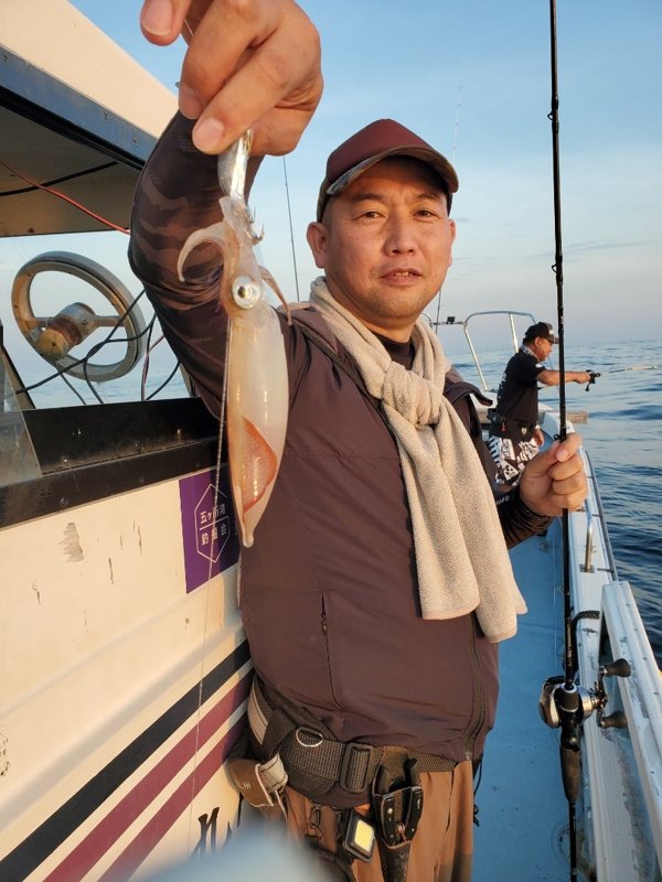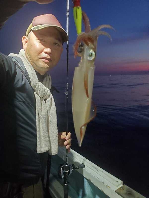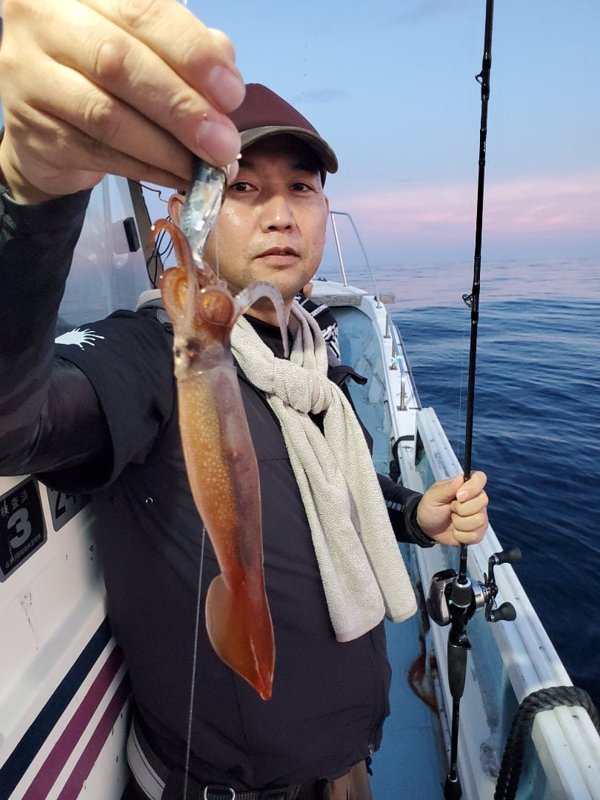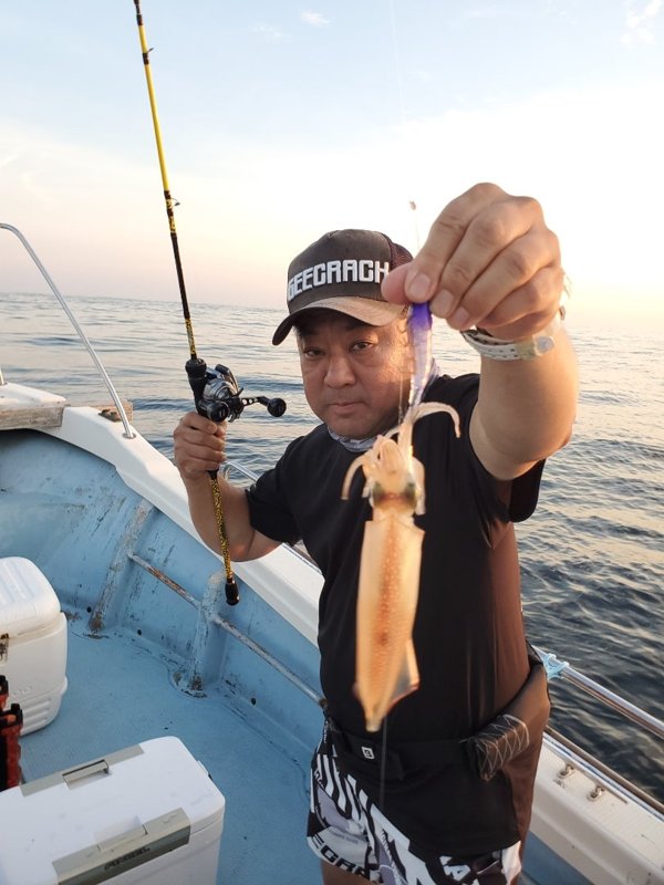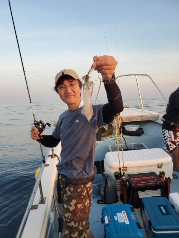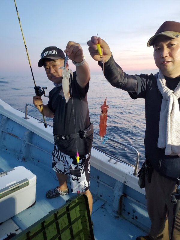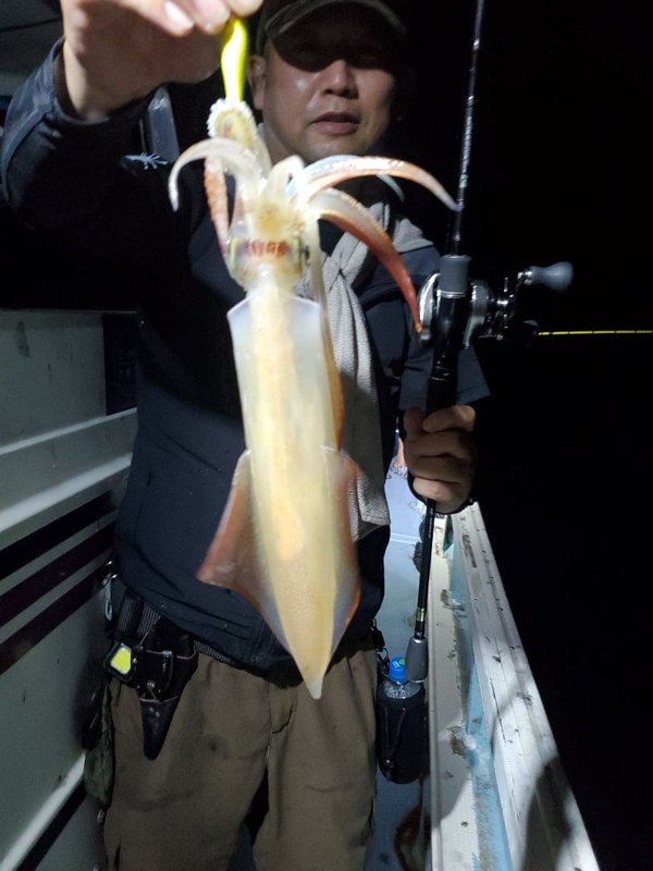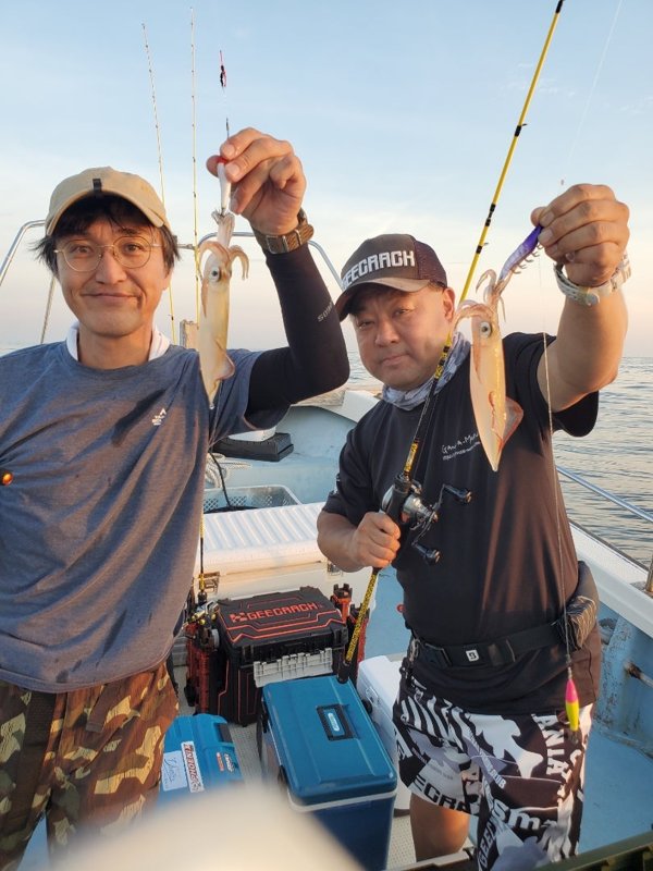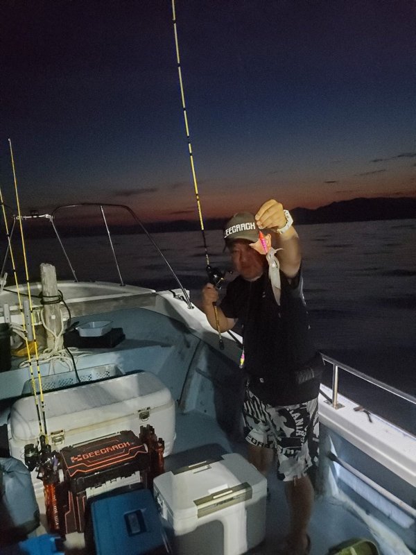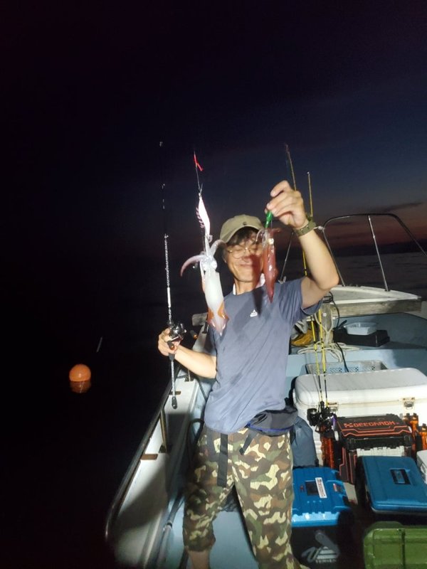 明るいうちから入れ乗りタイム。暗くなってもノリノリ。3人でアカイカ150パイ越え‼