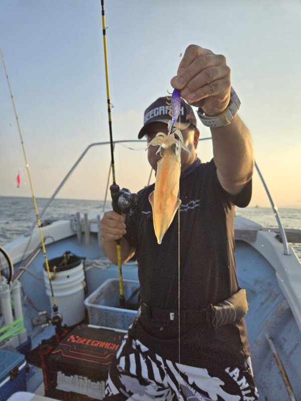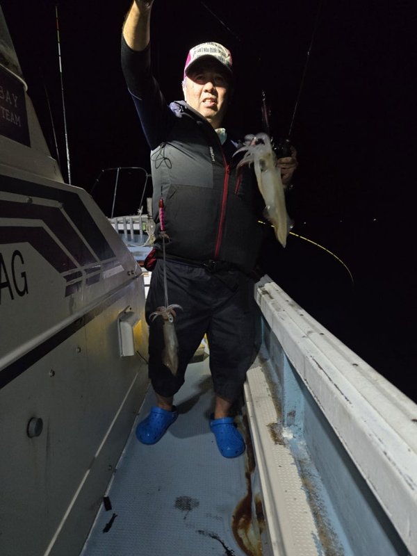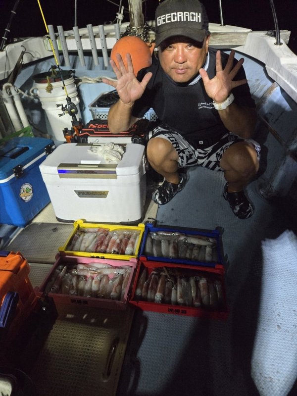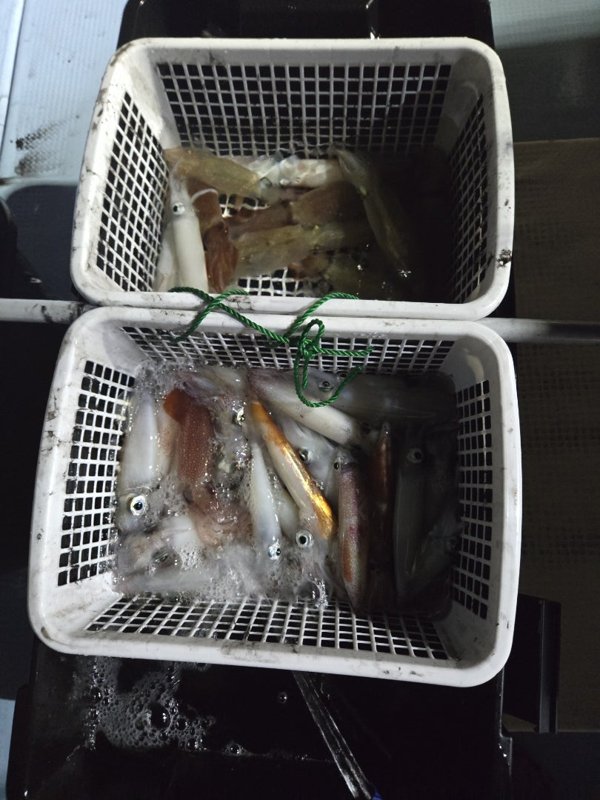 明るいうちからスタートダッシュ。竿頭59杯。まだまだ、釣れてます。