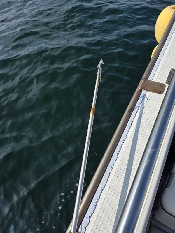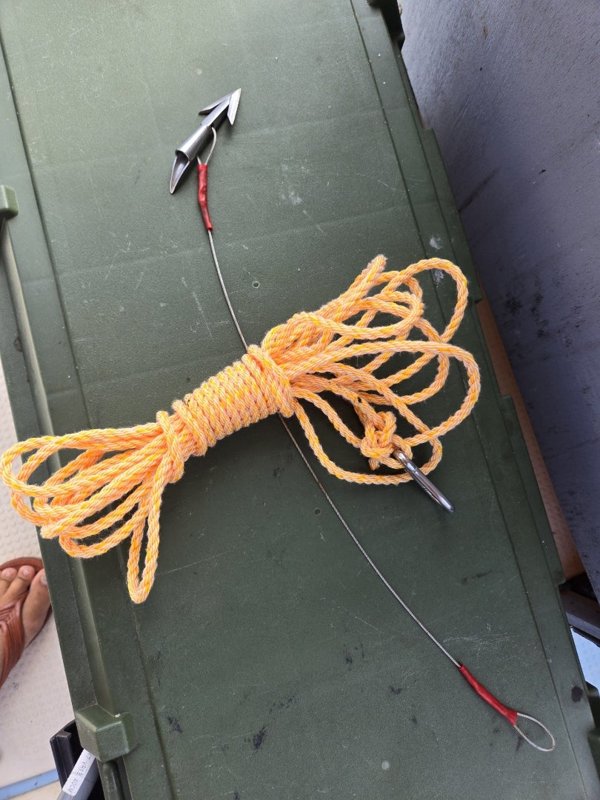 ビッグファイト。船で追っかけ、1時間10分格闘で上がってきたの約2m50cmのサメ。撃沈