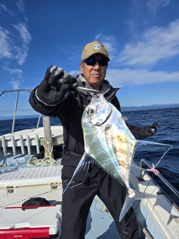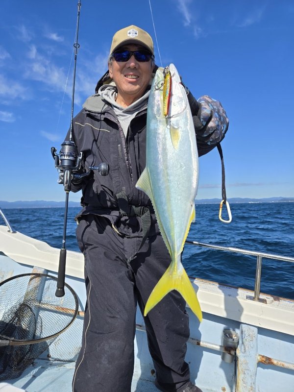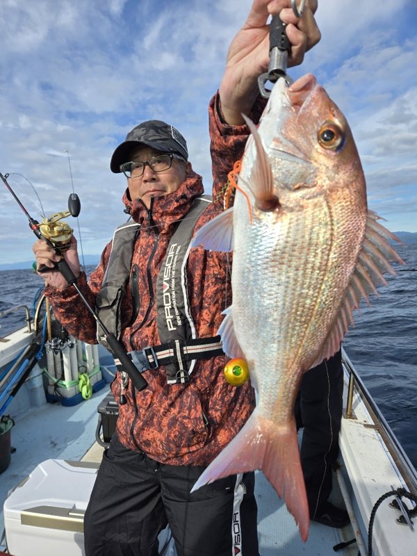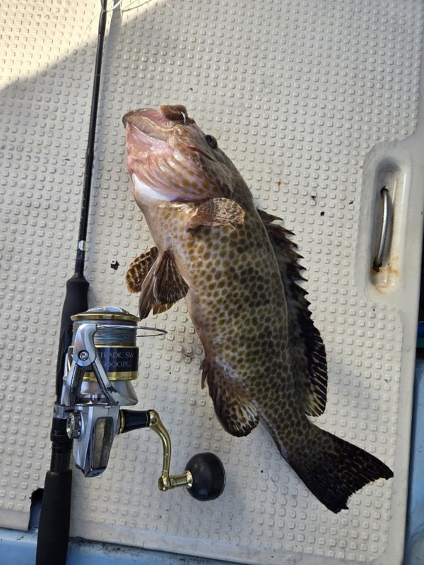 久しぶりに、沖に、でも当たらんぞ。マダイ、イトヒキ、ハマチ、その後当たらず、がまんできずに、ロックフィッシュ。