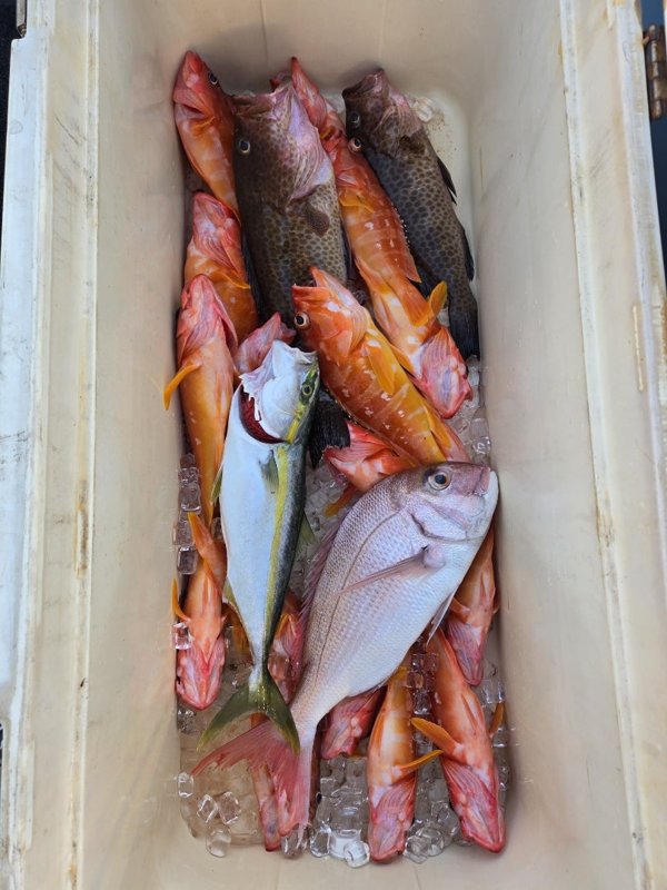 種類:マダイ、ハマチ、イトヒキダイ、オオモンハタ、アカハタなど