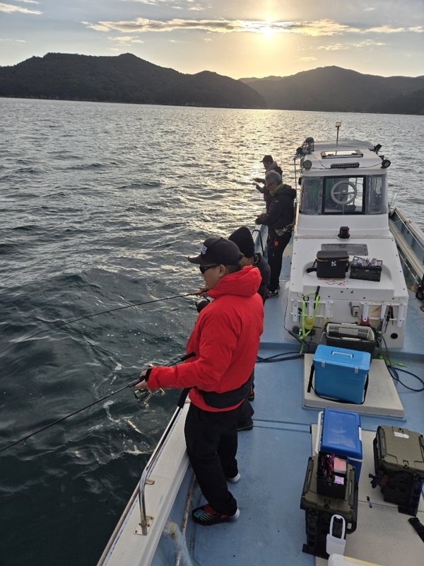 昨日の嵐の後なんでウネリが残る予報だったので、湾内限定ですが出船。4人中3人が初ティップラン。全員安打とはいきませんでしたが初あおりが1190g
