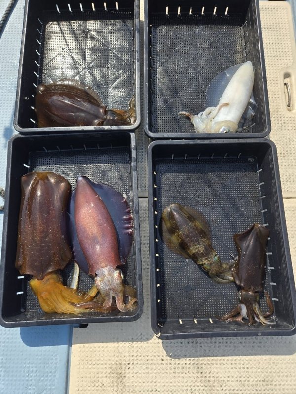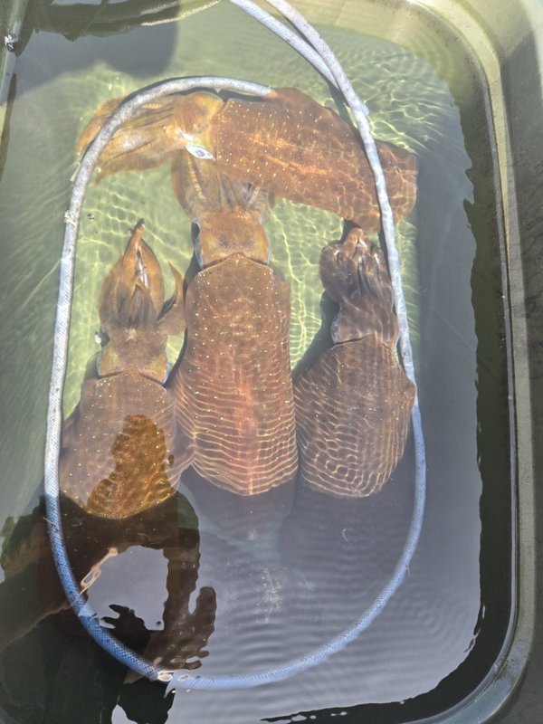 今日は早い時間からヒット。なぜかメスばかり、最後にオスが。リリース1杯入れて7杯。7杯中5杯が1人の人。安定してイカを誘ってました。追っかけてくるイカもまぁまぁいました。