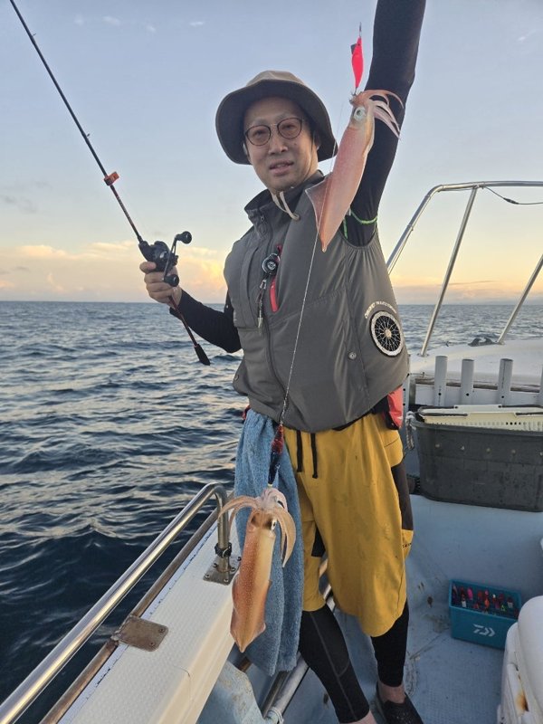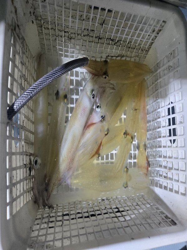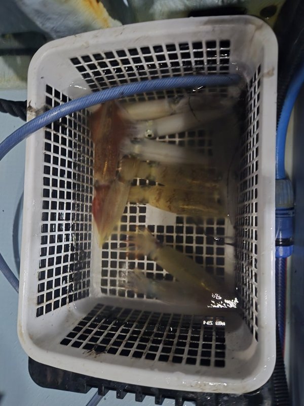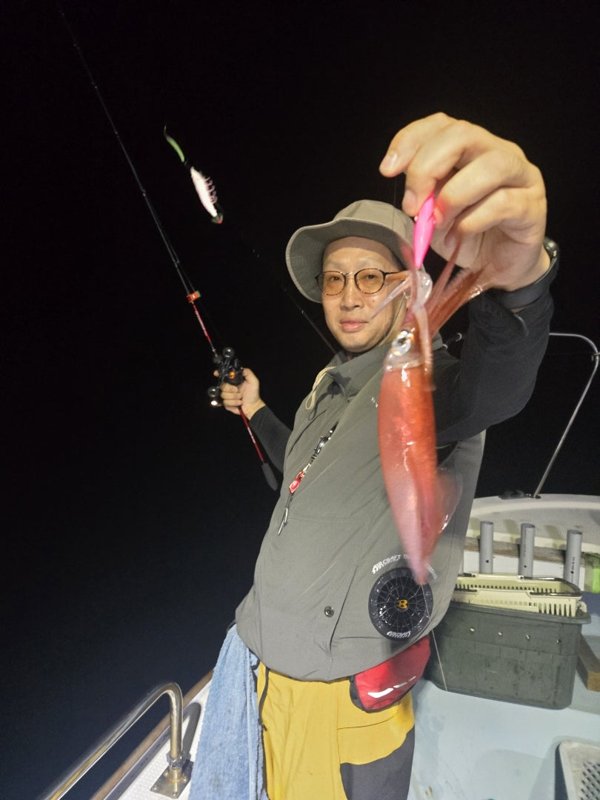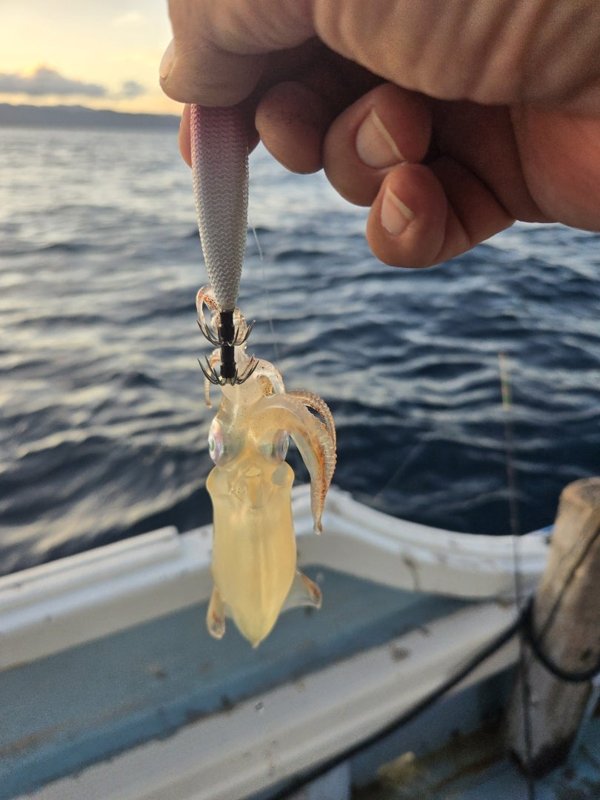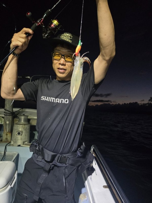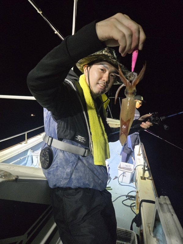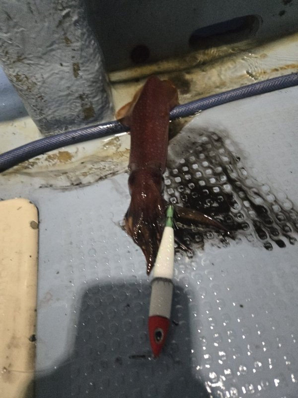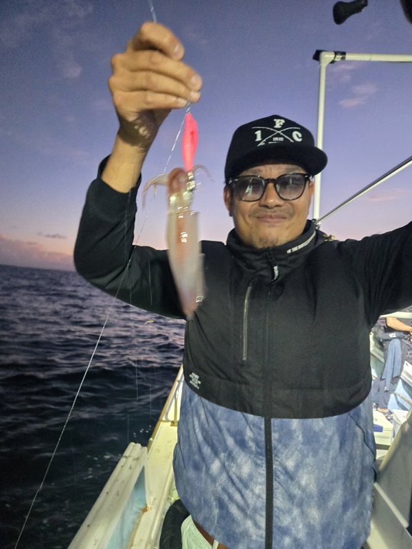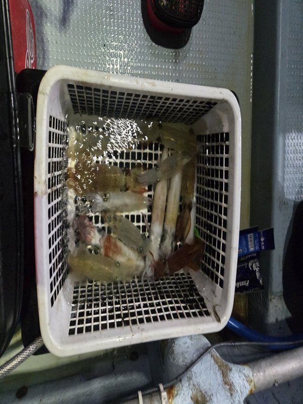 まぁまぁのウネリが。明るいうちは当たらず、暗くなってから。10~18杯。船酔いと眠気と戦って頑張ってくれました。