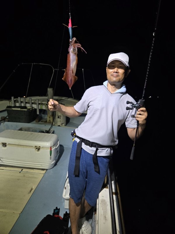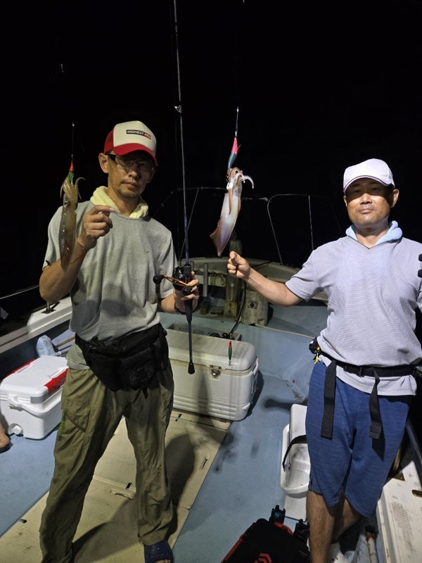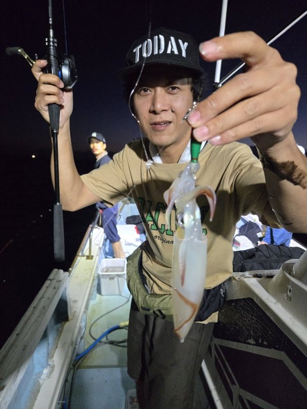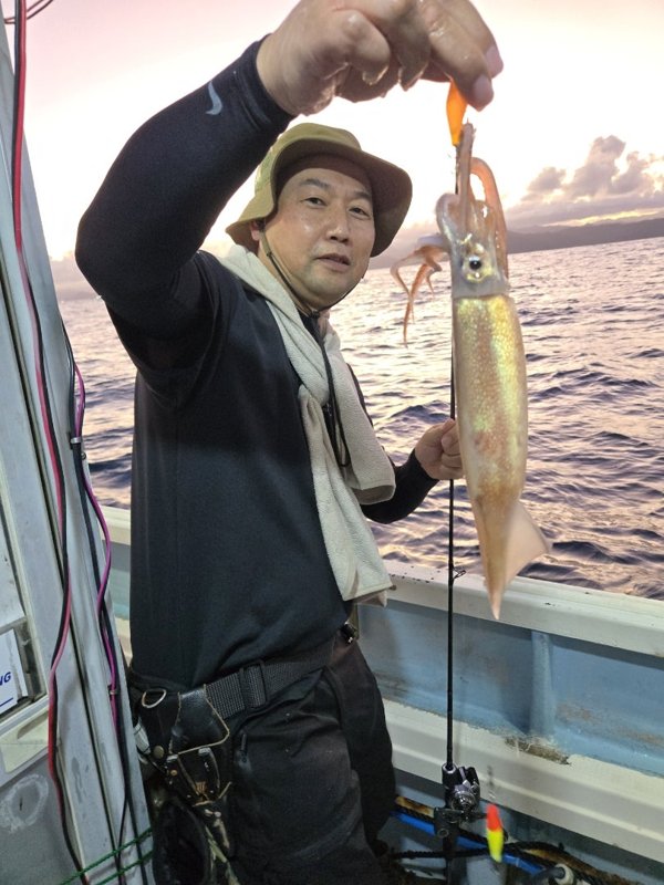 昨日よりウネリ高く、風は少し弱い。5人中4人が、ほぼ初イカメタル。このコンディションは結構キツイかも。船酔いしながら頑張ってくれましたが、我慢できず22時に終了しました。