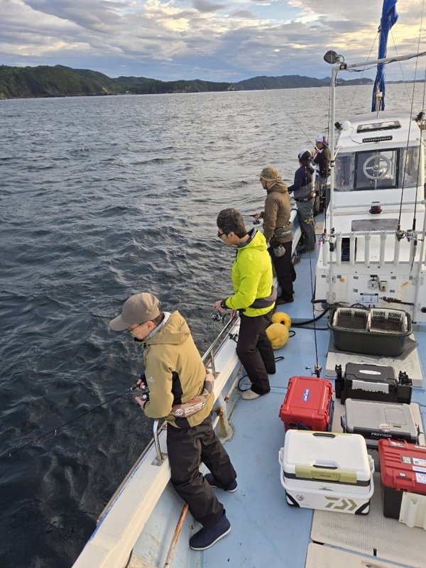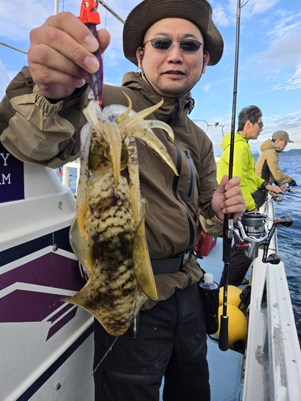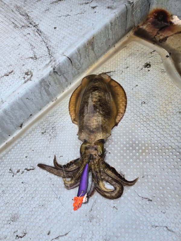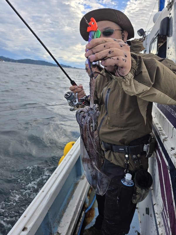 昨日出た船は皆良く当たってたのでワクワク。途中から爆風でも逃げずにやり続けて、今シーズン初のキロオーバーも出て、アオリン14杯+墨爆弾2個
