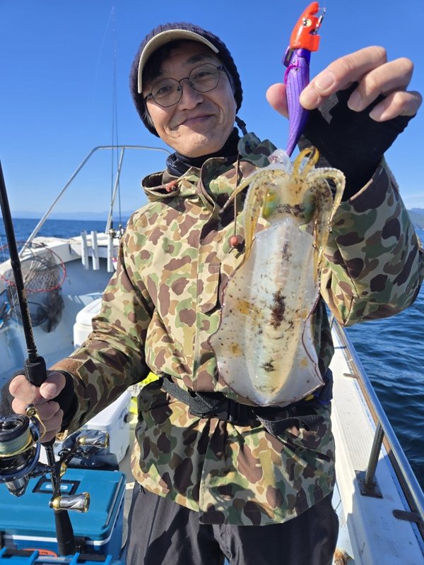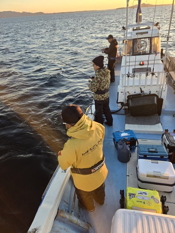 無風予報でしたが朝イチにエエ風吹いて良さそう。こないだパタパタ当たった場所か、もう1ヵ所か悩んで、パタパタ当たった場所に入ったのが間違い。プレジャーが多く流れだしても当たらん。迷った場所で僚船はパタパタ当てとった。今日は俺のポイント選択ミスでした。でも全員安打が救いです。